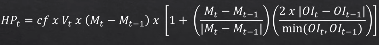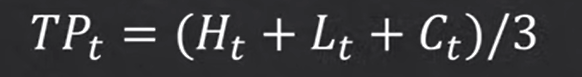 まず、OBVと違って、終値は使用せず代わりにTPtを求めます。 高値Htと安値Ltと終値Ctを足して平均を出したものをTPと定義しています。