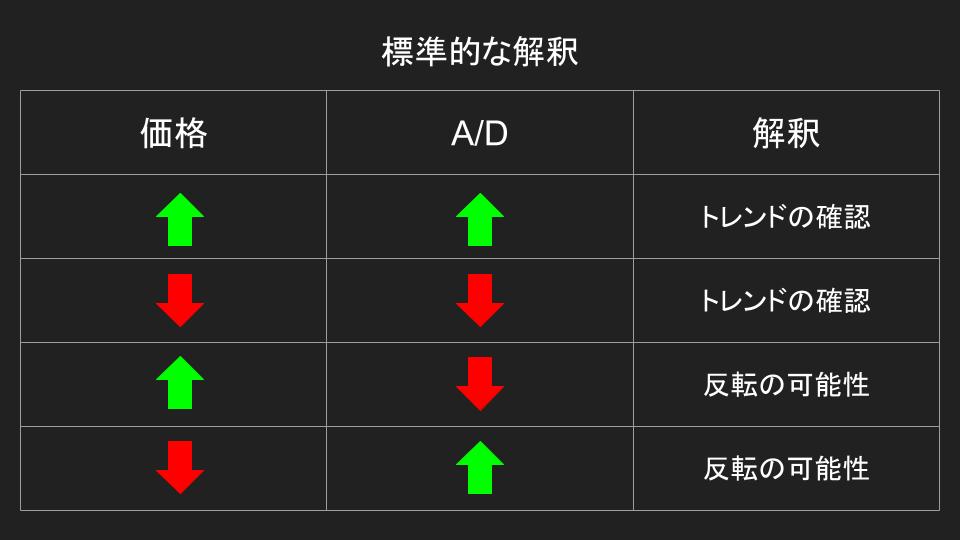 では、価格とA/Dの関係の解釈を確認していきましょう。