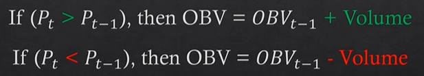 一つ目の式の意味としては、 現在の終値Ptが前回の終値Pt-1より高い場合、前回の期間のOBVに現在の期間の出来高を加える