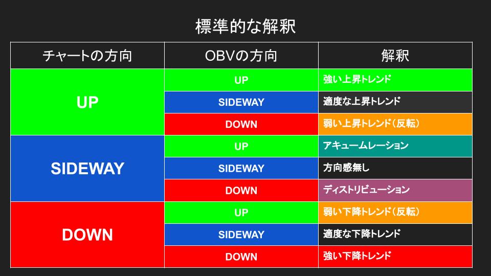 ここでOBVでの標準的な解釈を紹介します。