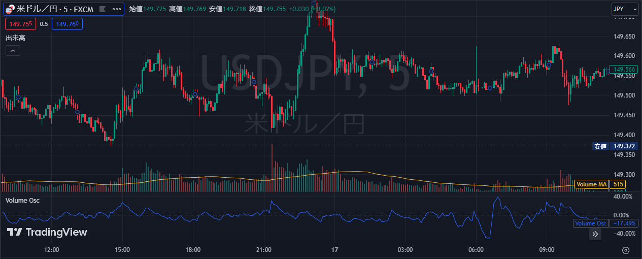 • 欠点は、何も数値を設定していない純粋な出来高のため、読み取りが難しい