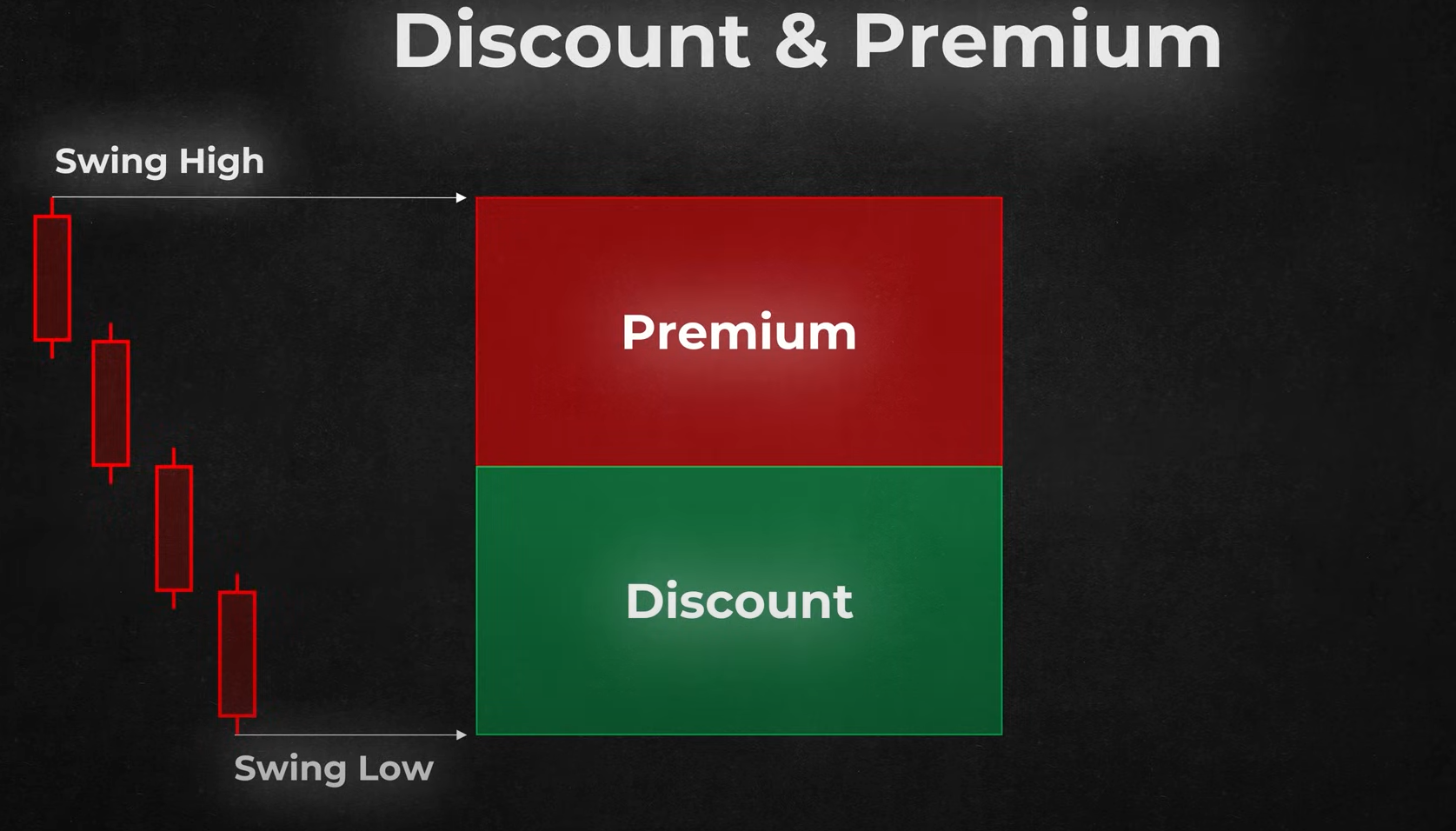 一方で、Premium Zoneは相場のバイアスが下降方向の時に、陰線のSwing・High~Swing・Lowにフィボナッチを置いて、Smart Moneyが売りエントリーを仕掛けるポイントになります。