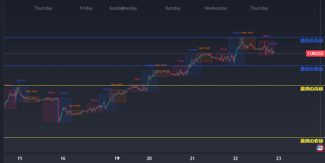 最後の「日中の時間枠での高値安値」については、Daily Biasを解説する時に、詳しく深堀していきます。