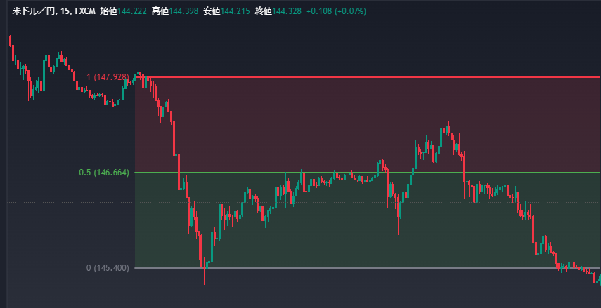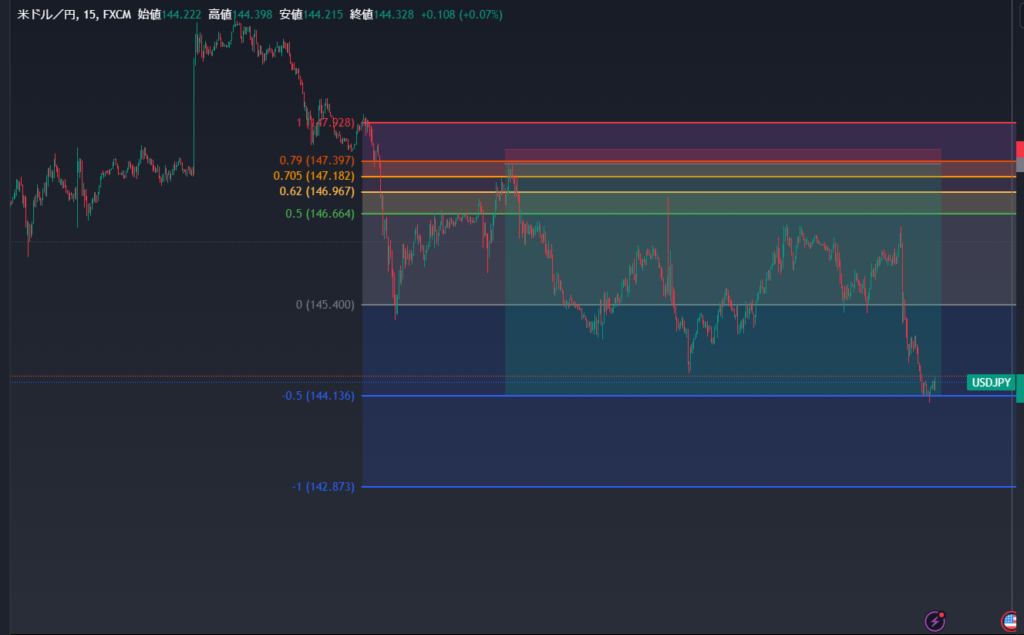 利確目標はフィボナッチリトレースメント・レベルの-0.5か-1まで狙います。