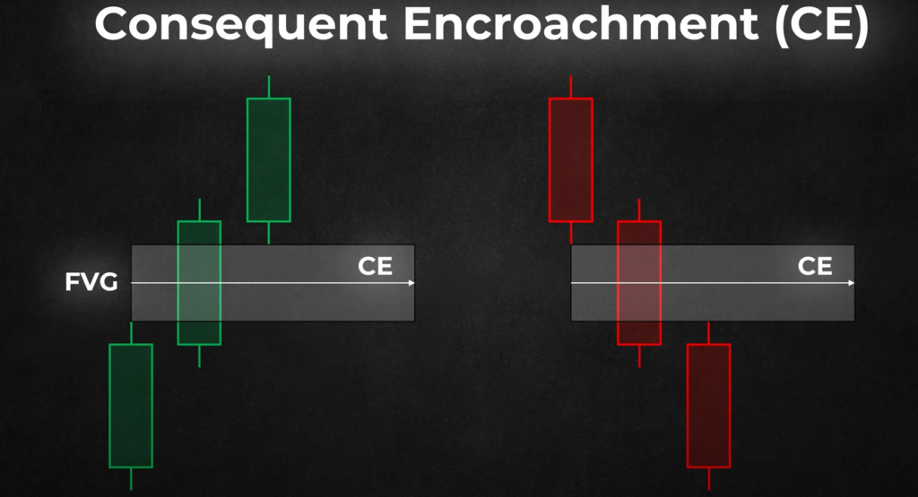 ICTで言えば、FVGによって「引き寄せたチャート」が、FVG内で反発するのか、抜けるのかのラインを決めるのがCEとなります。