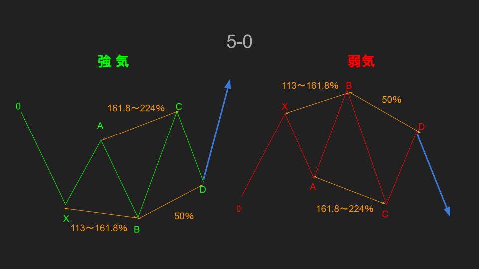 今回は5-0(ファイブゼロ)というもので、BCセグメントのリトレースメントが50%であることからだという由来があります。