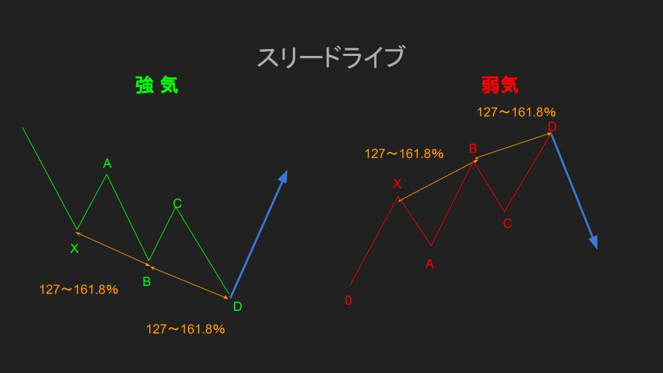 - D点:X-Aからのエクステンション113%かつX点を超えること(B-Cからのエクステンション200~361.8%)